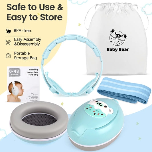 2-in-1 Baby Ear Muffs Noise Protection,Noise Canceling Headphones for Baby & Toddler 0-12-36 Months, Infant Ear Protection in Plane, Adjustable Headband,Improves Sleep - Blue