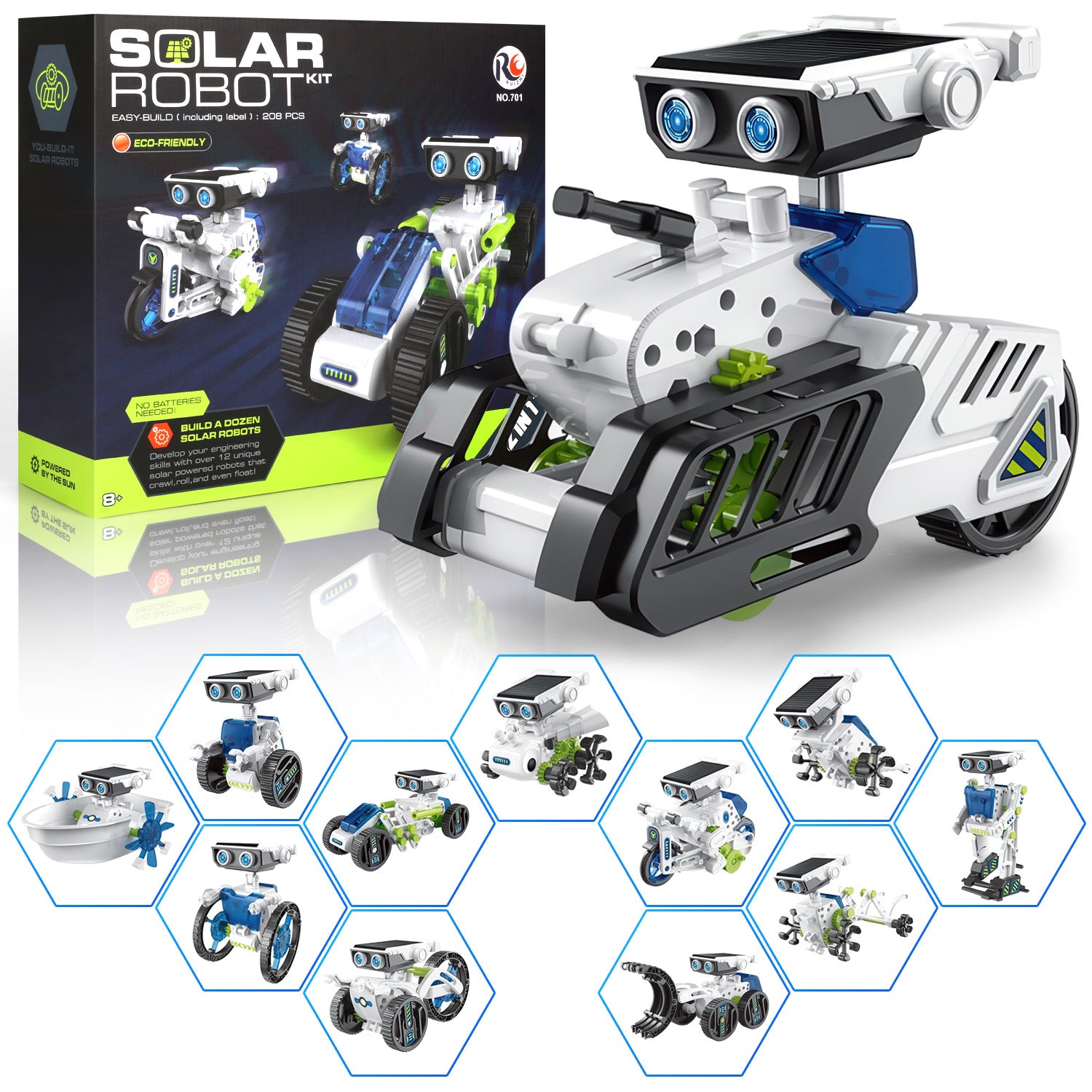 The 12-in-1 solar robots kit are versatile and can be powered by either solar panels or batteries. With the inclusion of battery slots, these robot toys can be used in any weather condition and at any time of day, providing more opportunities for kids to learn about robotics and STEM concepts while having fun.