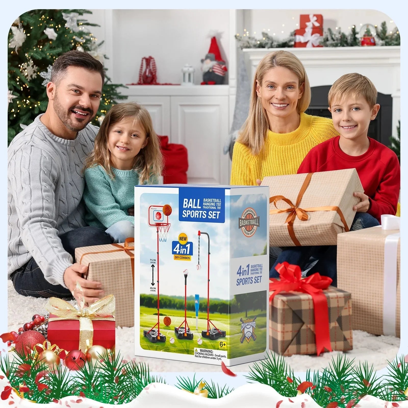 đUQN 3-in-1 Kids Basketball Hoop Set : Basketball, Baseball & T-Ball Fun Combo!