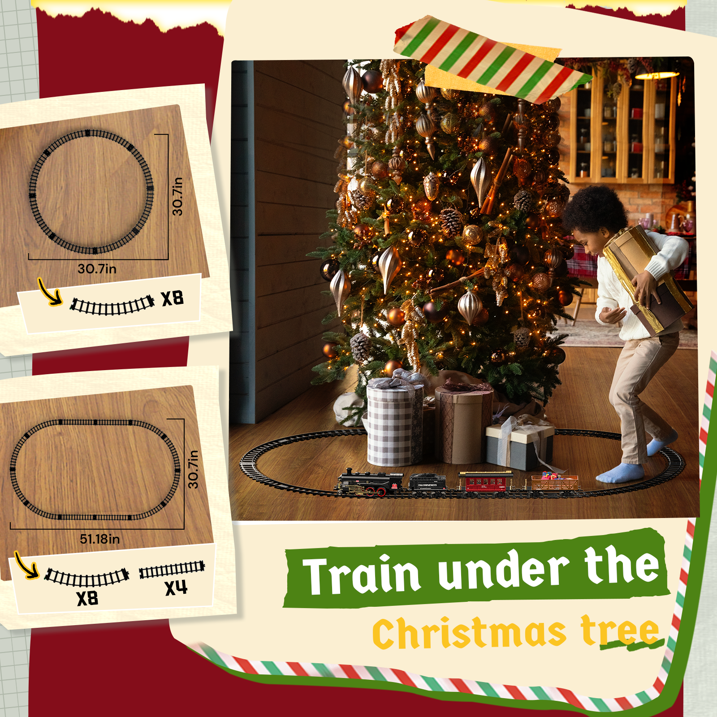 - đ ăUpgraded Alloy Train Setă : Crafted from alloy materials, this Christmas train set for kids aged 4-8 is non-toxic and odorless. Its substantial, durable build features smooth edges that won't harm a kid's hands or bodies.