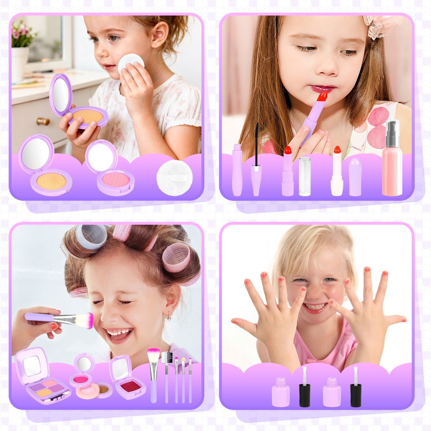 - đ§˝ăSafe, Non-Toxic & Washableă: All products in this kids makeup set for girls 3-4 5-8 are non-liquid, non-applicable imitation cosmetics made from food-grade silicone, ensuring kid safety from the source.