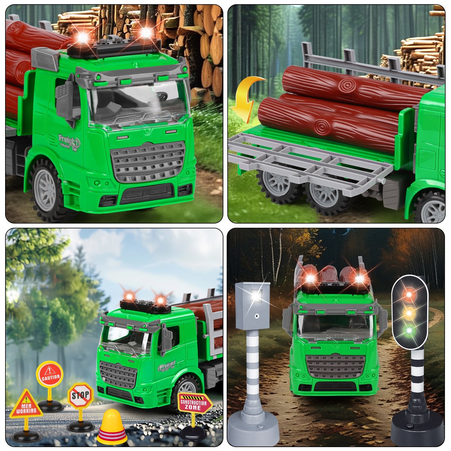 - šŖµćAuthentic Shapeć: The green wood truck and log shape are rich in detail and high in reproduction, bringing kids a real visual experience and cognitive experience.
