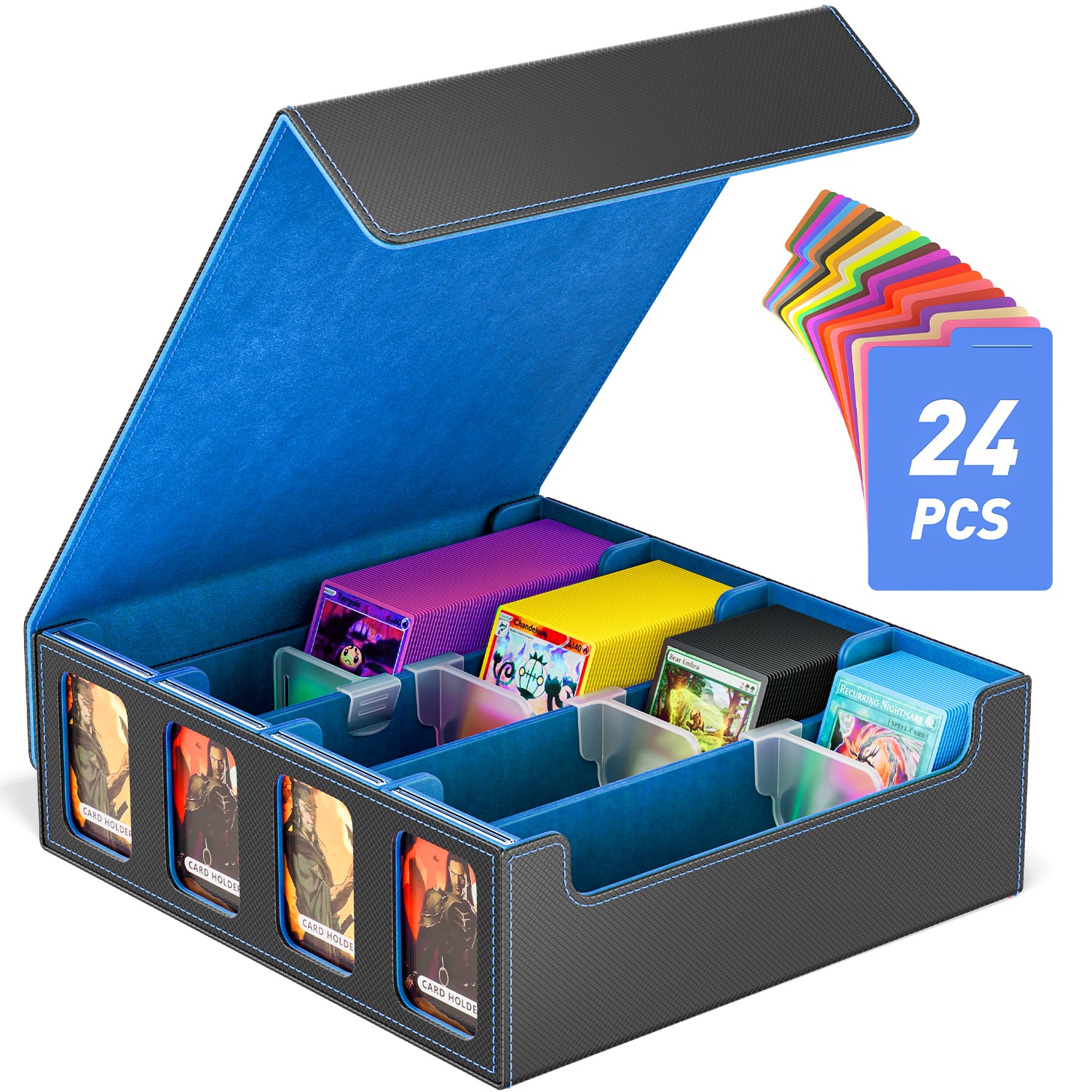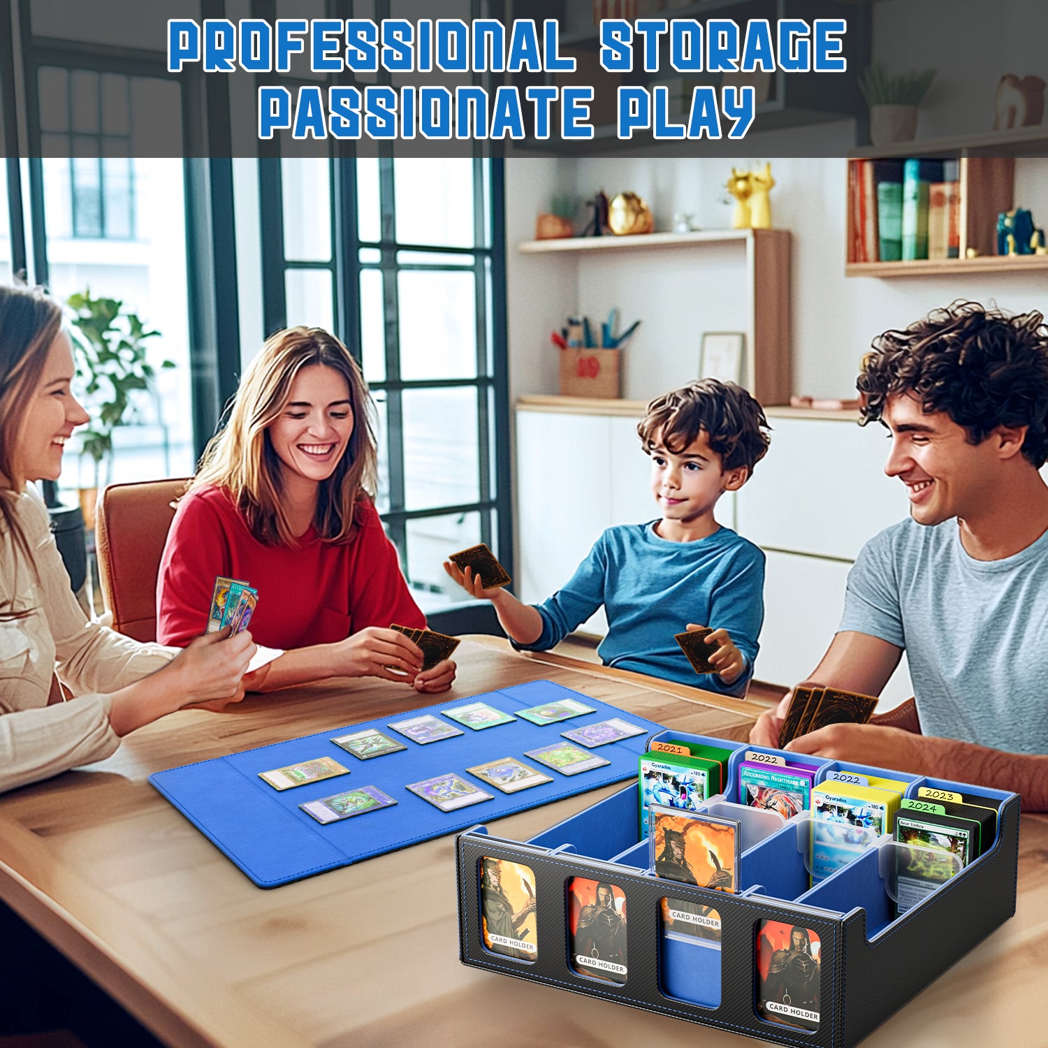 Trading Card Storage Box, 3200+ MTG Deck Box, Magnetic PU Leather Card Deck Box, Fits for Magic Game Sports Cards (Blue)
